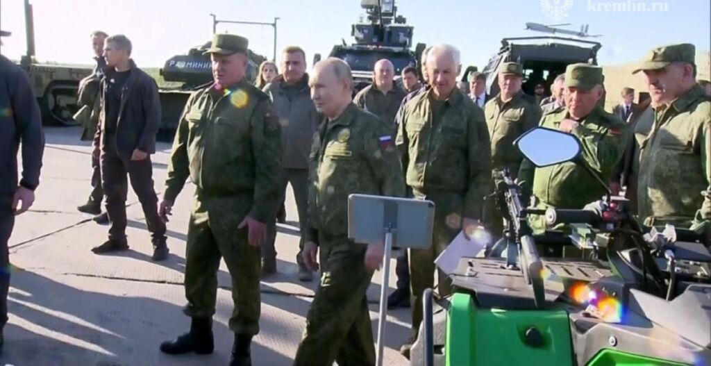 Як повідомляють російські ЗМІ, Путін у військовій формі оглянув зразки озброєння, спеціальної та військової техніки на полігоні “Муліно” в Нижегородській області, де відбувся основний етап навчань.