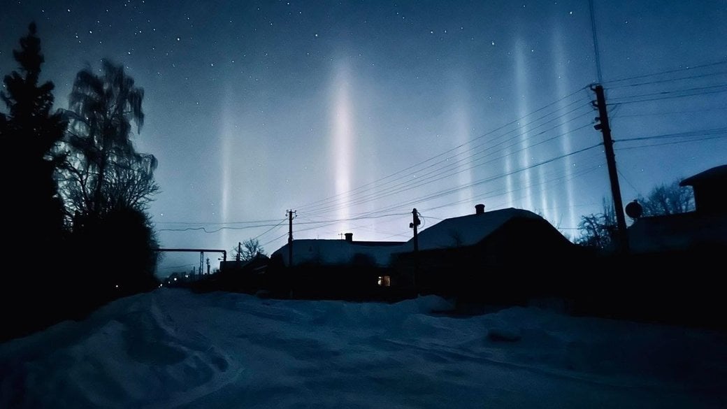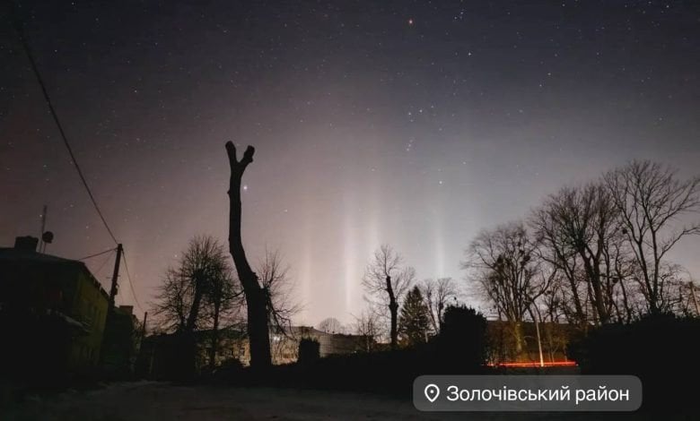Увечері 9 лютого та в ніч проти 10 лютого жителі Львівщини та міста Бережани на Тернопільщині стали свідками світлових стовпів. Соцмережі швидко заполонили фото вертикальних світлових променів, що здіймалися вгору крізь ясне зимове небо.
