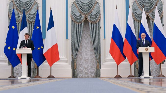 Попытка решить все кавалерийским наскоком, дескать, сейчас я слетаю в Москву и обо всем договорюсь, наткнулась на жесткую позицию, которую российский президент занял с первых минут встречи: «Я хочу и вас спросить: вы хотите воевать с Россией? Вы спросите своих читателей, зрителей, пользователей интернет-ресурсов. Вы хотите, чтобы Франция воевала с Россией?»