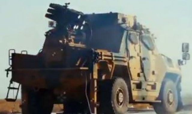 Турецкий тактический колесный бронированный автомобиль Vuran, оснащенный новой реактивной системой залпового огня (РСЗО), поразил цель в ходе испытательных стрельб.