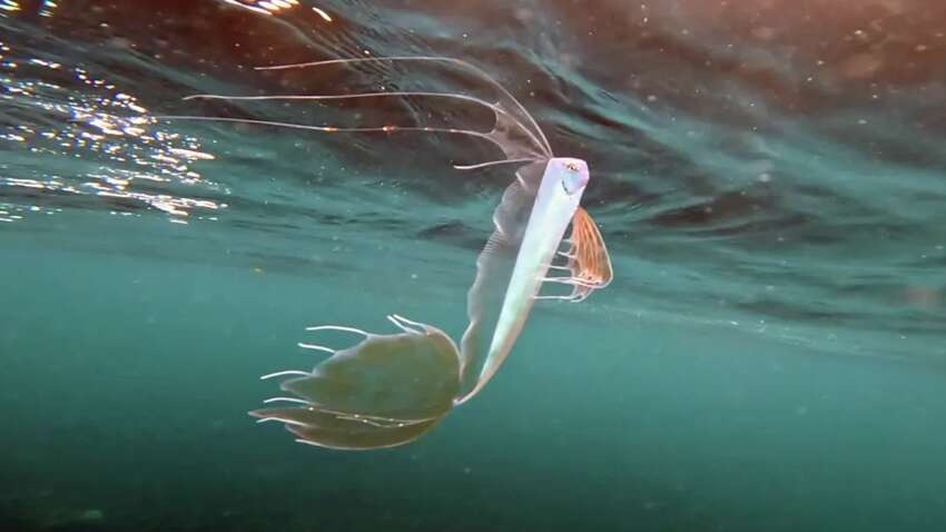 Біля узбережжя Каліфорнії дайвер Тед Джуда став свідком надзвичайно рідкісного явища. Він зустрів у затоці Монтерей живу молоду особину оселедцевого короля, відомого також як “риба Судного дня”. Ця стрічкоподібна срібляста риба зазвичай мешкає на глибинах до 900 метрів, тому її поява біля поверхні океану вважається надзвичайно рідкісною подією.