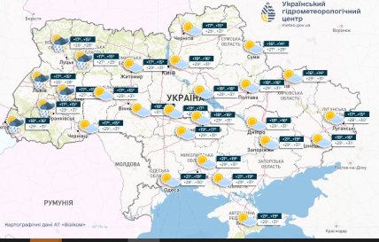 У четвер, 27 червня, на території України переважно без опадів, лише вдень у Карпатах та на Закарпатті очікуються дощі з грозами, місцями град та шквали, 15 – 20 м/с. Вітер північний, у західній частині східний, 5 — 10 м/с. Температура повітря вночі +12…+17, вдень +24…+29 градусів тепла.