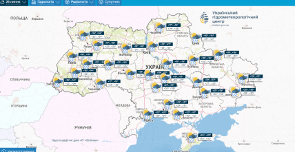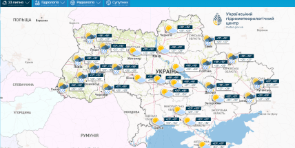 У вівторок, 23 липня, дощова погода накриє східні та західні області. В решті очікується похмура погода. Максимальна температура повітря у цей день — +32 градуса, на півдні України.