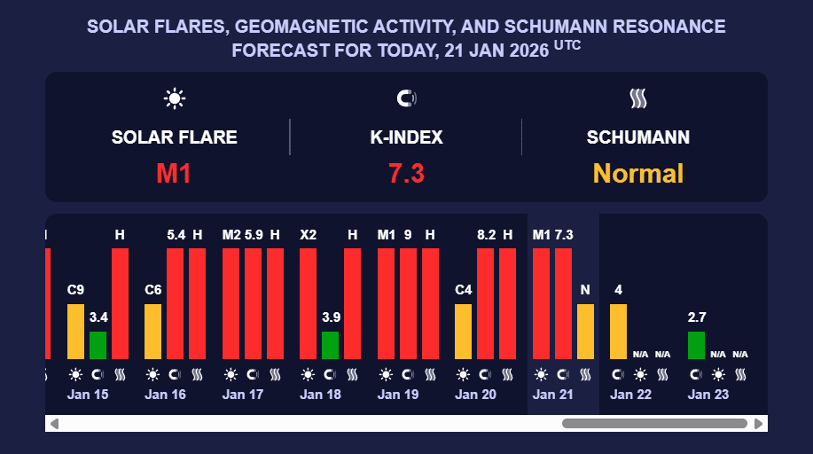 У середу, 21 січня, очікується сильна магнітна буря. Шторм сягне К-індексу 7.3 (червоний рівень) – з дев’яти можливих.