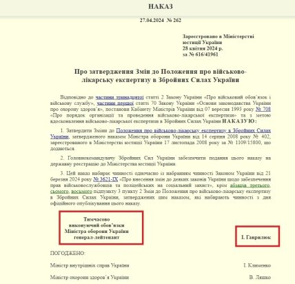 Справа в тому, що 3 травня у відкритому доступі з’явився наказ Міністерства оборони від 27 квітня “Про затвердження Змін до Положення про військово-лікарську експертизу у Збройних Силах України”. Проте замість Умєрова його підписав тимчасово виконуючий обов’язки Міністра оборони України генерал-лейтенант Гаврилюк.