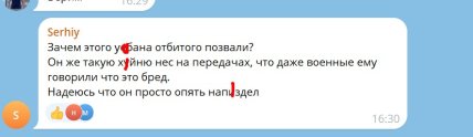 Реакція на це повідомлення з’явилась і в телеграм-каналі політолога Костянтина Бондаренка.