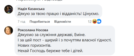 Проте є й інші коментарі. Джапаровій дякують за “працю та відданість”. Також бажають “нових горизонтів”.