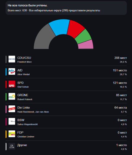 - ХДС/ХСС (Фрідріх Мерц): 28,5% голосів виборців.