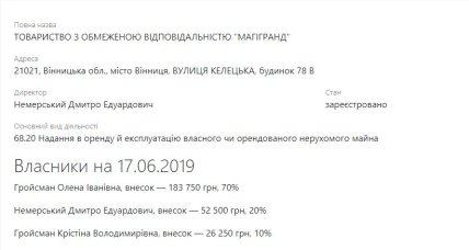 У 2019 році дочка Гройсмана у 19-річному віці стала співвласником торговельного центру у Вінниці, внісши до статутного капіталу 26 250 гривень. Засновником товариства з обмеженою відповідальністю багато років є Олена Гройсман, дружина колишнього прем’єра. Тоді в документах з’явилася і їхня спільна донька Христина.