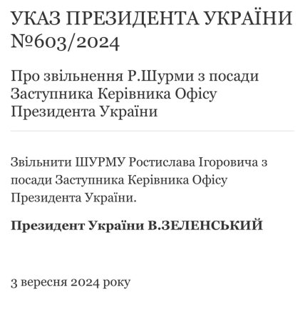 “Звільнити Шурму Ростислава Ігоровича з посади заступника керівника Офісу Президента України”, — йдеться у тексті указу Володимира Зеленського.