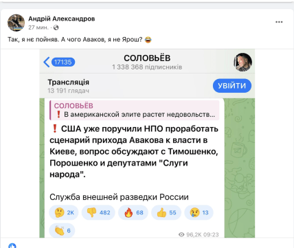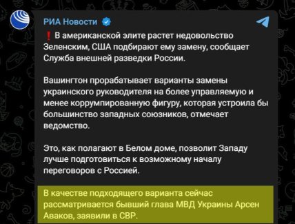 США нібито хочуть замінити чинного президента України Володимира Зеленського на колишнього міністра внутрішніх справ України Арсена Авакова. Адже він “менш корумпована та більш керована” фігура, на думку Росії. Українці вже сміються з цього в мережі.