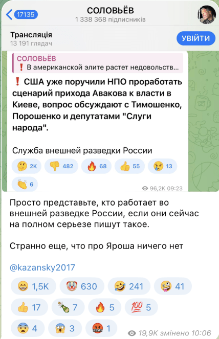Більшість українців шоковані робою розвідки РФ, якщо вона серйозно пропонує Авакова у президенти.