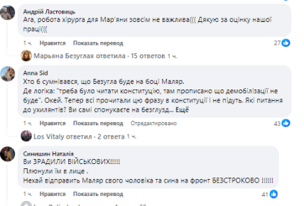 У коментарях під постом разом із Ганною Маляр також захейтили й Мар’яну Безуглу.