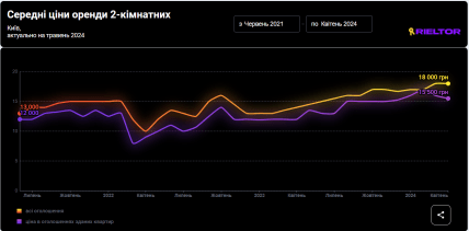 Так, середня вартість оренди 1-кімнатної квартири у столиці становить 14 тисяч гривень.