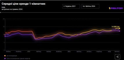 Так, середня вартість оренди 1-кімнатної квартири у столиці становить 14 тисяч гривень.