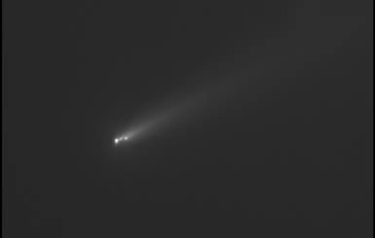 “З першого швидкого аналізу зображень ми можемо підтвердити, що безумовно існують два досить схожі фрагменти, максимальна яскравість яких розділена приблизно 2000 км”, – повідомив дослідник Маццотта Епіфані у заяві Італійського національного інституту астрофізики. Він також додав, що астрономи “підозрюють наявність третього, меншого та тьмянішого фрагмента ліворуч від пари”.