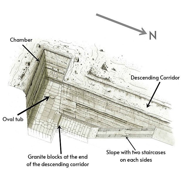 У центральній камері археолог виявив овальну чану з граніту, закриту приталеною кришкою. Усередині, за його словами, колись були залишки невідомої речовини, які нині втрачені. Цей об’єкт став однією з головних загадок комплексу.