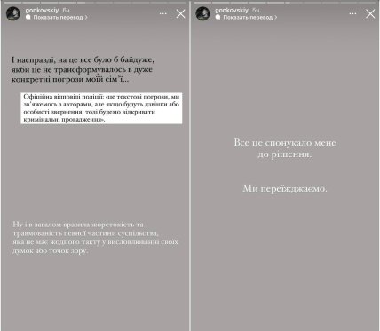 “Одне з найважчих рішень у житті”, за словами блогера, він прийняв через загрозу для дітей, яка нібито виникла після подій на Мальдівах. Деякі висловлення Гонковського викликають припущення, що мова йде про саме виїзд за межі країни.