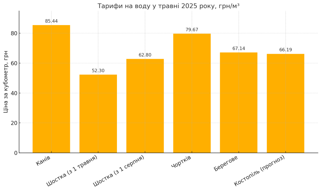 У Береговому на Закарпатті тарифи вже оновлено: 41,88 грн за воду + 25,26 грн за відведення. Разом — 67,14 грн.