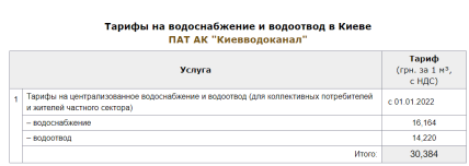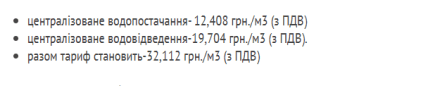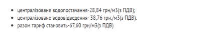 • за водопостачання — 16,16 гривень за м³ з ПДВ