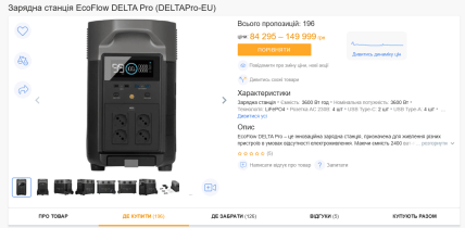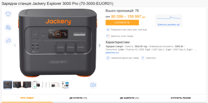 На сайті Hotline, де можна порівнювати ціни у різних торгових точках, бачимо, що ціна такої зарядної станції коливається у межах 84 295 – 149 999 грн.