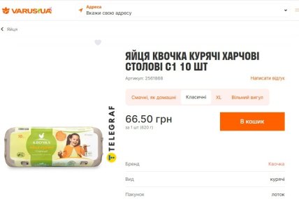 Така сама ціна на 10 штук яєць стоїть і в “Varus”.
