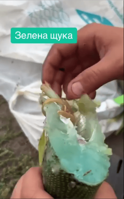 У водах Дніпра неподалік Києва чоловікові вдалося виловити щуку середніх розмірів, яка виділялася незвичайним “забарвленням”. Рибалка вирішив розрізати її прямо на березі і побачив, що м’ясо у риби зеленого кольору.