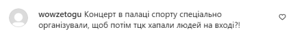 Критика пролунала й на адресу гурту. Користувачі запитують, чи це не була спланована акція: “Концерт в Палаці спорту спеціально організували, щоб потім ТЦК хапали людей на вході?!”