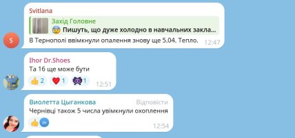 В іншому дописі, жителі Рівного пишуть, що треба було відключати опалення на тиждень пізніше, а хтось писав, що школи варто переводити на дистанційне навчання.