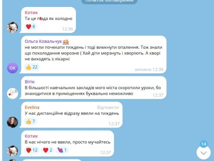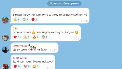 Також були й інші коментарі з приводу того, що в навчальних закладах холодно. Українці припускають, що до кінця тижня всі будуть хворіти.
