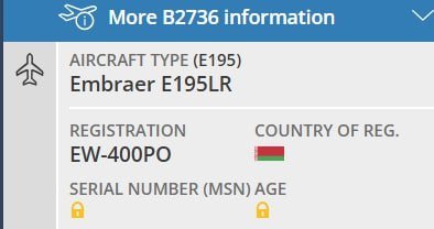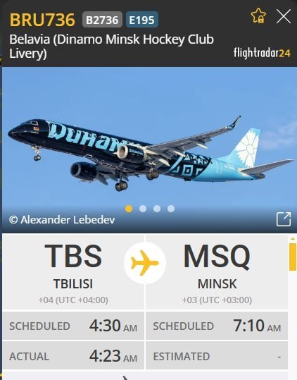Про це свідчать дані порталу Flightradar24. Його системи зафіксували літак Embraer E195LR білоруської авіакомпанії “Бєлавіа”, який виконував рейс Тбілісі-Мінськ.