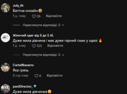 “Виготовлення та розповсюдження дорослого контенту — 7 років в’язниці, чи зараз щось змінилося?”, “Вагітний онлайн”, “Який бруд”, “Коли раніше було соромно говорити, що ти ш******а”, а зараз це стало мейнстримом”, — пишуть деякі користувачі в коментарях.