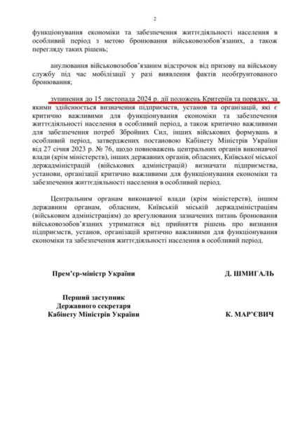 Під час загальної мобілізації деякі категорії чоловіків можуть бути заброньовані від призову через професійну діяльність. Кабмін призупинив бронювання до 15 листопада та ухвалив рішення узгодити певні питання та переглянути раніше прийняті рішення, через що почали ширитися чутки, ніби всі надані броні буде скасовано.