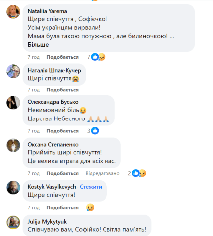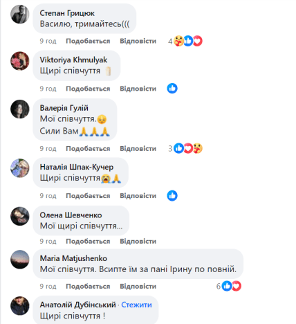Й під публікацією дочки й під публікацією зятя безліч коментарів. Українці висловлюють співчуття у зв’язку з їхньою втратою.