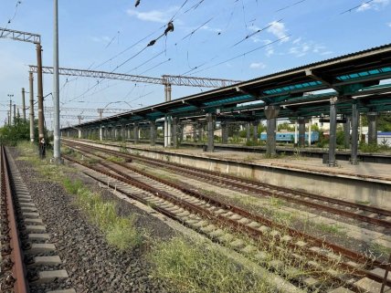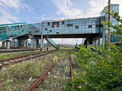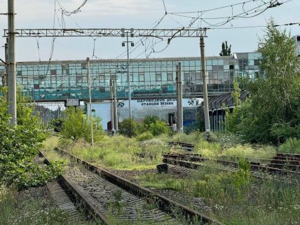 Залізничні колії поросли травою та деревами. А рейки вкрилися іржею, це говорить про те, що тут давно відсутній рух потягів. Також помітно, що місцями вже навіть відсутня контактна мережа.