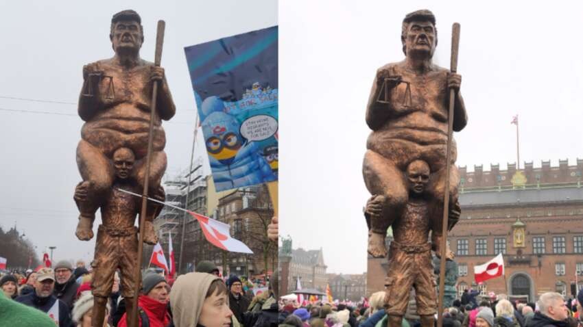 Подібну інсталяцію Трампа верхи на чоловіку Єнс Галшіот раніше демонстрував на кліматичному саміті COP30 у Бразилії та інших містах світу.