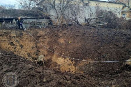 Унаслідок збитої балістичної ракети РФ, яка атакувала столицю сьогодні зранку, в одному районі Києва утворилася велика вирва від падіння уламків.…