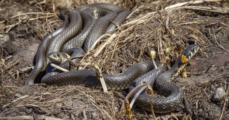На острові Монастирський у Дніпрі місцеві мешканці помітили велику кількість змій, які зібралися в траві та між гілками. На відео видно, як десятки плазунів переплітаються, створюючи гніздо.…