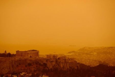 Помаранчева вуаль піщаної бурі охопила південно-східну область Центральної Греції, створюючи моторошну картину. Очікується, що 24 квітня опівдні явище відступить. Про…