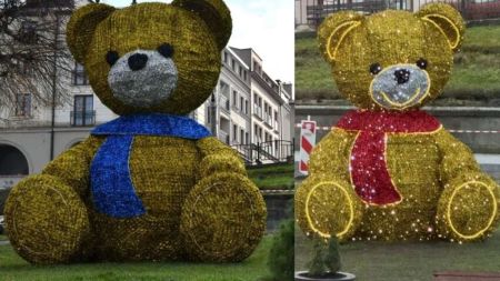 У польському прикордонному місті Перемишлі розгорівся скандал довкола різдвяної інсталяції. Нового святкового золотого ведмедя, встановленого на початку грудня, прикрасили синім…