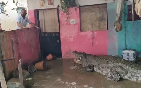 В Індії величезний 4,5-метровий крокодил був знайдений на подвір’ї будинку після того, як його занесло туди повінню. Про це пише Need To…
