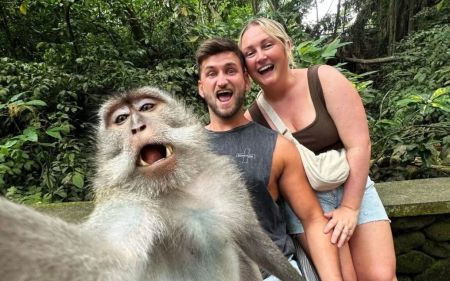 Нахабна мавпа зробила селфі з двома британськими туристами на Балі, Індонезія. Про це пише Daily Mail. Глоя Денніс із чоловіком Крейгом перебували…