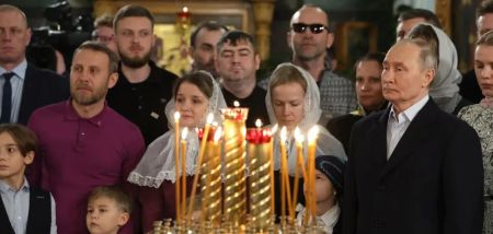 На Різдво російський диктатор Володимир Путін засвітився у компанії “нової еліти РФ”. Богослужіння у храмі Георгія Побідоносця на Поклонній горі в Москві…