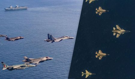Індійські винищувачі Су-30МКИ та Jaguar провели навчальний повітряний бій із британськими F-35B у рамках навчань Konkan 2025, під час сценарію оборони авіаносця…