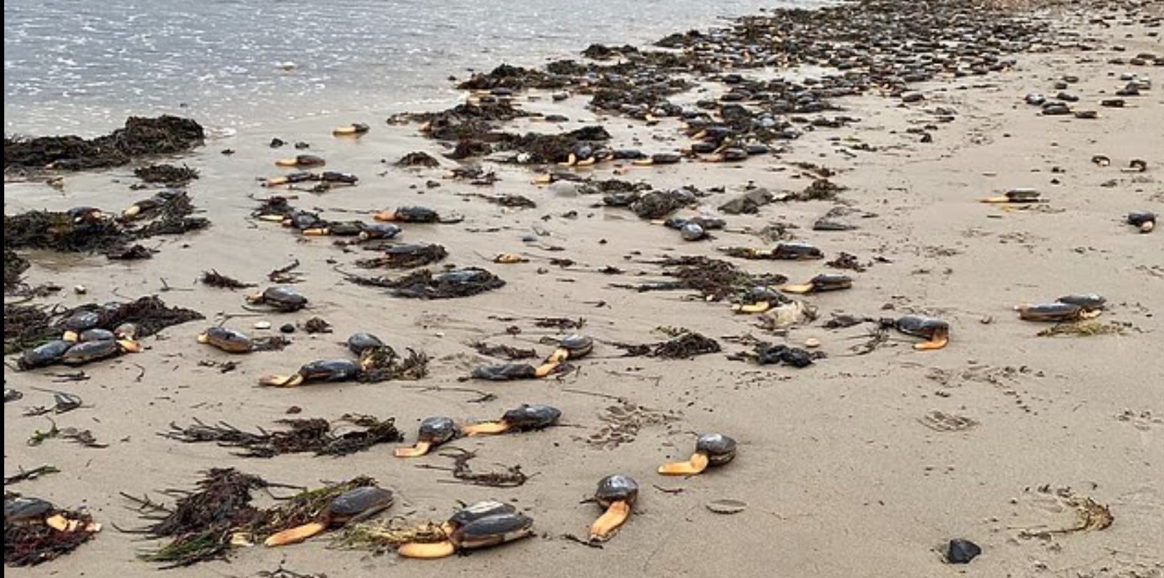 Насправді за лякаючою зовнішністю ховаються рідкісні молюски-видри. Їхні довгі сифони, що нагадують нутрощі або щупальця, зазвичай надійно заховані глибоко під морським дном. Проте аномальні східні вітри здійняли настільки потужні хвилі, що вони буквально вивернули морське дно, витягнувши мешканців із їхніх схованок, пише Експерт з посиланням на Daily mail.