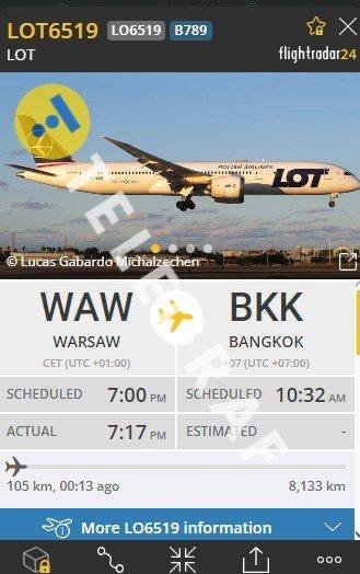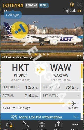 Рейс LO6194/B788 вилетів з Таїланду о 13:55 та приземлився у Польщі, Варшава, о 19:46 за місцевим часом. Ще один рейс B789/LO6519 навпаки прямував з Варшави до Бангкока. Його виліт був о 19:00 та приземлився борт о 10:32 наступного дня. Обидва борти, згідно з мапою польотів, пролетіли над закритим повітряним простором України.
