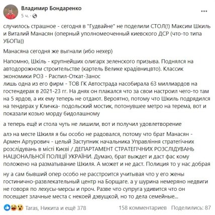 Про бізнесмена, чий столик зайняв Манасян