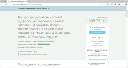 Національна акціонерна компанія “Нафтогаз України” витратить майже 5 млн гривень (близько 100 тисяч доларів США) на процедуру з пошуку нового голови правління компанії. Шукати його будуть через рекрутингову агенцію.