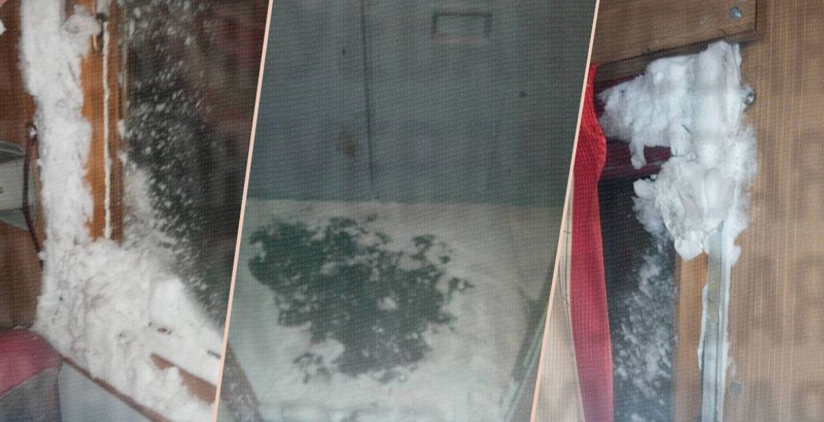 На оприлюднених світлинах можна побачити, як сніг “пробився” через шпаринку у вікні до купе і лежить на столику, полицях, навіть на підлозі й у тамбурі. Про засніжені вікна через протяг мова вже не йде – вони справжні “сніговики”. Судячи з кадрів, потяг, у якому насніжило, старішого зразка.