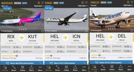 Мова йде про Airbus A330 компанії Finnair, який прямував рейсом FIN121 з Гельсінкі до Делі, Airbus A321 компанії Wizz Air, що виконував рейс W67950 з Риги до Кутаїсі. А також було помічено авіалайнер Airbus A350 теж компанії Finnair, що летів рейсом FIN41 з Гельсінкі до Сеула.